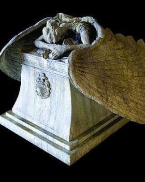 18’8” wide x 15’ tall with a 5’opening between the columns, this beautiful Cemetery Gate features a pair of Reaper characters that include electric motors that make their heads pan from left to right as the Coach Lights they are holding are illuminated. Carved bas relief Angel wings give the entry dramatic sweeping height. The support columns feature an elaborate cut out grating creating a back lit effect.