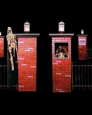 Outdoor Free standing Burial Tombs- Sturdy, weather resistant fully enclosed outdoor Burial Tombs can be used as set pieces to display characters/actors or you can remove the broken away center insert to allow patrons to “pass thru” the available 42”w x 84” tall center entry section of each.